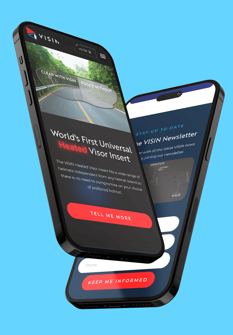 The new Visin Heated Visor website needed to work just as seamlessly on a mobile device as well as larger devices. The site was built using a feature-rich content management system allowing for additional content to be added easily as required. The hero banner uses a video to instantly explain to the user what the product does as soon as they land on the website.